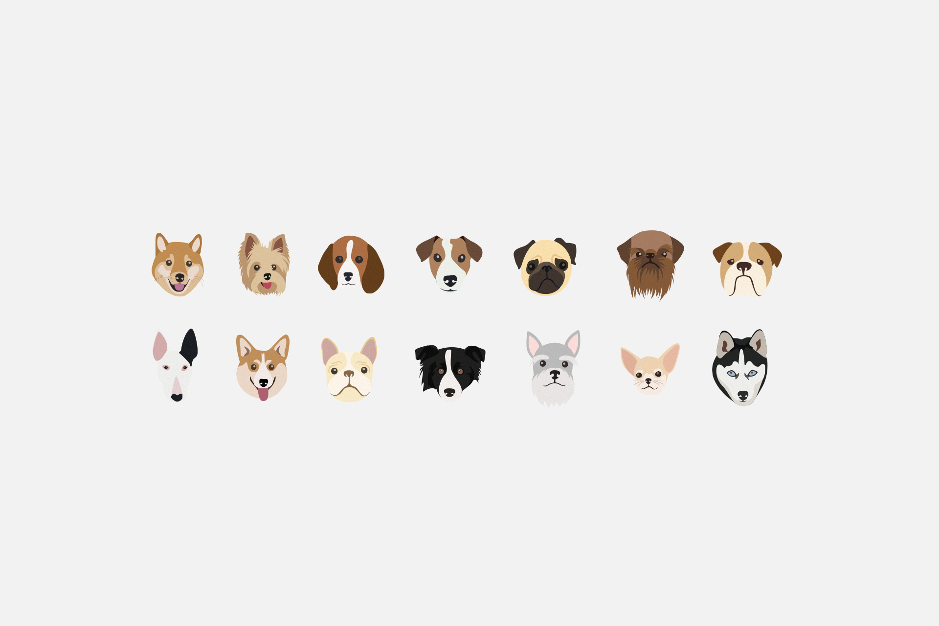 I created illustrations of different breeds to use as stickers that were handed out at events. I also created a pattern with the breed illustrations to use on our business cards and social media.