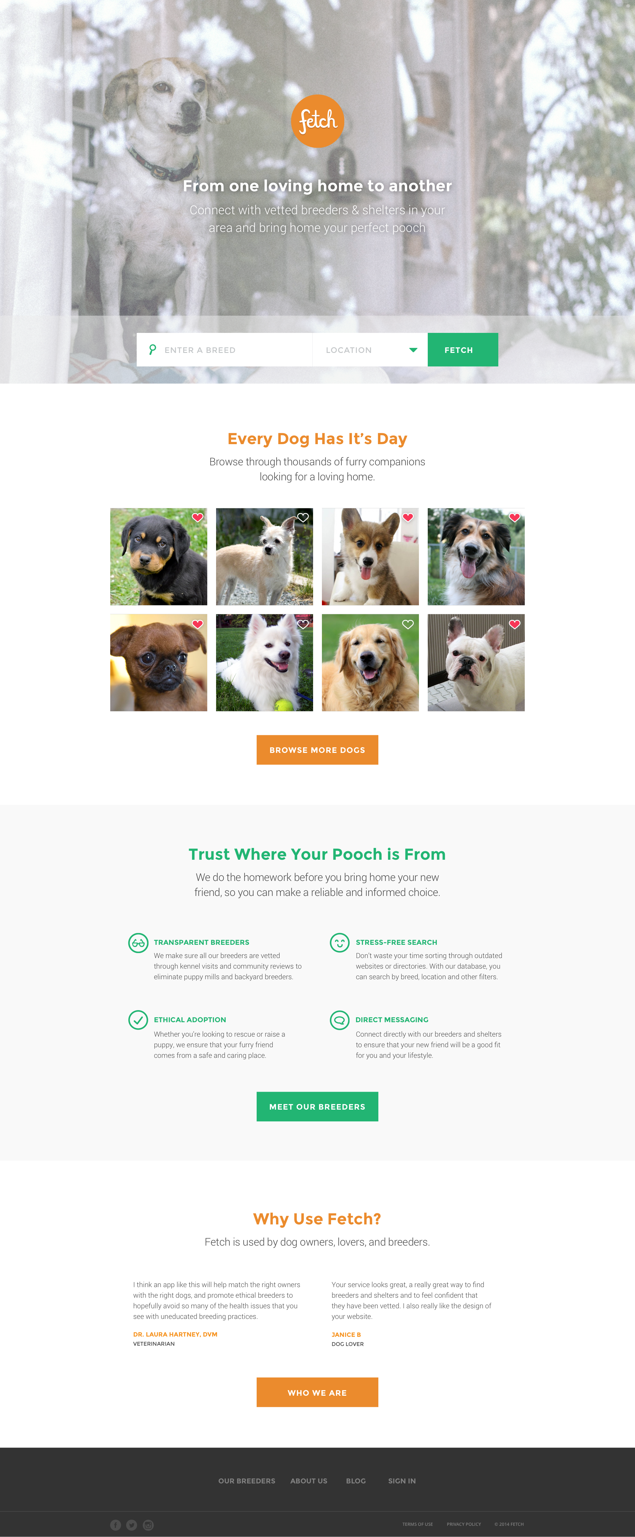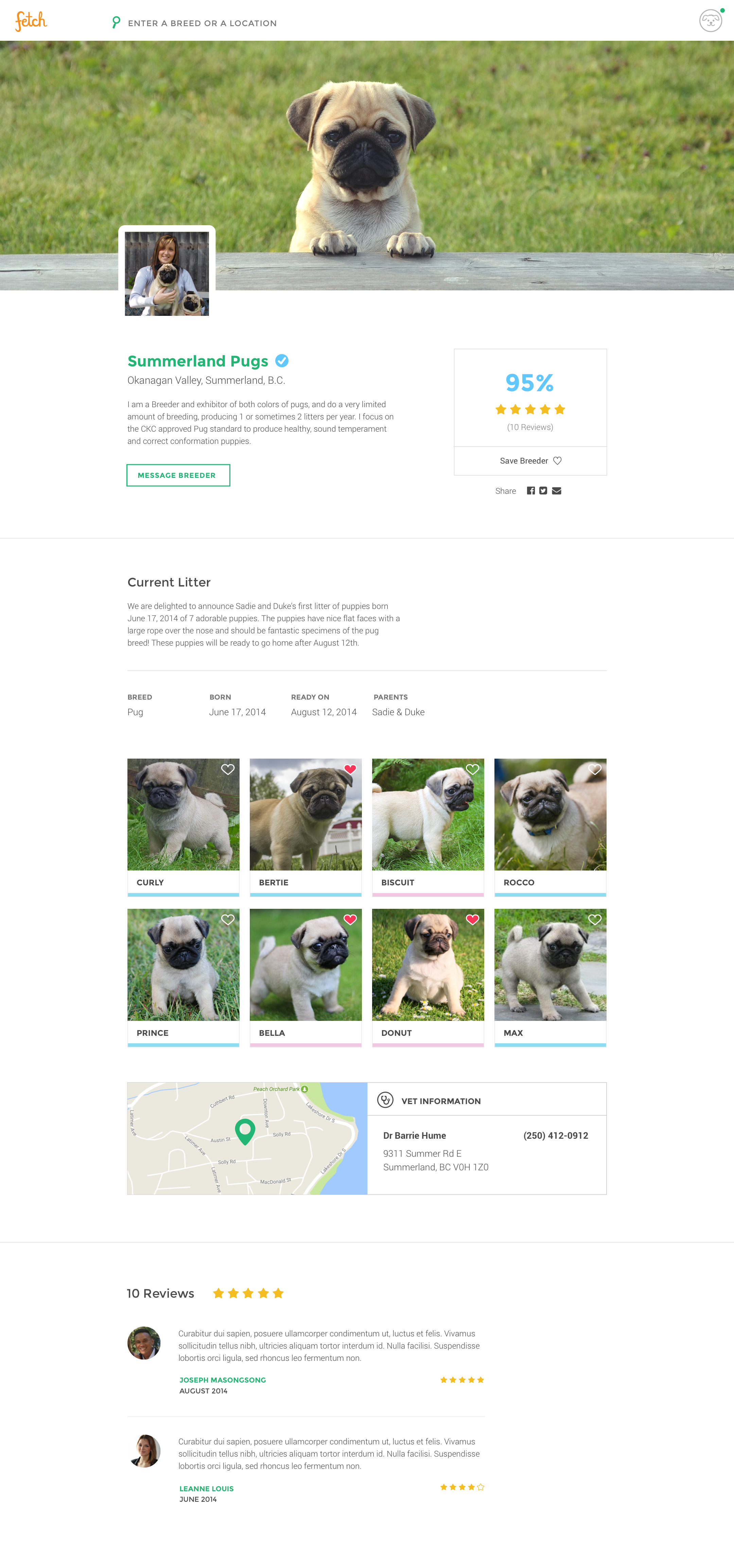 In 2015, two classmates–Joseph and Ali from Lighthouse Labs, and myself started a web platform that connected people with reputable dog breeders and shelters in their area. The idea came to us when Joseph was looking for a dog and recalled his experience to be frustrating and fragmented. He referred to newspapers, offline/online classifieds, outdated websites but had a hard time trusting the credibility of the source.